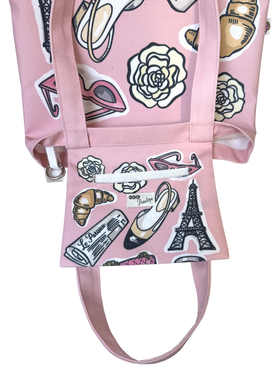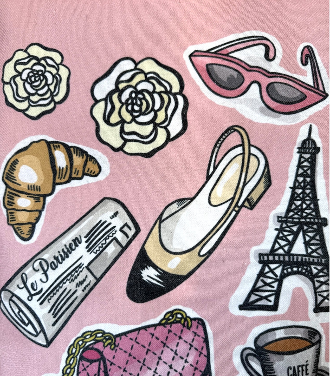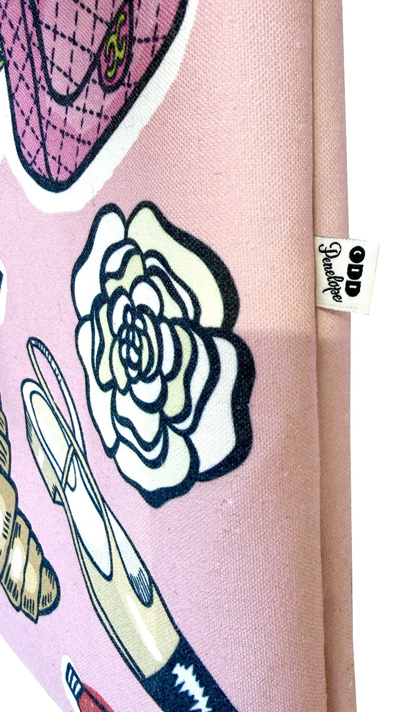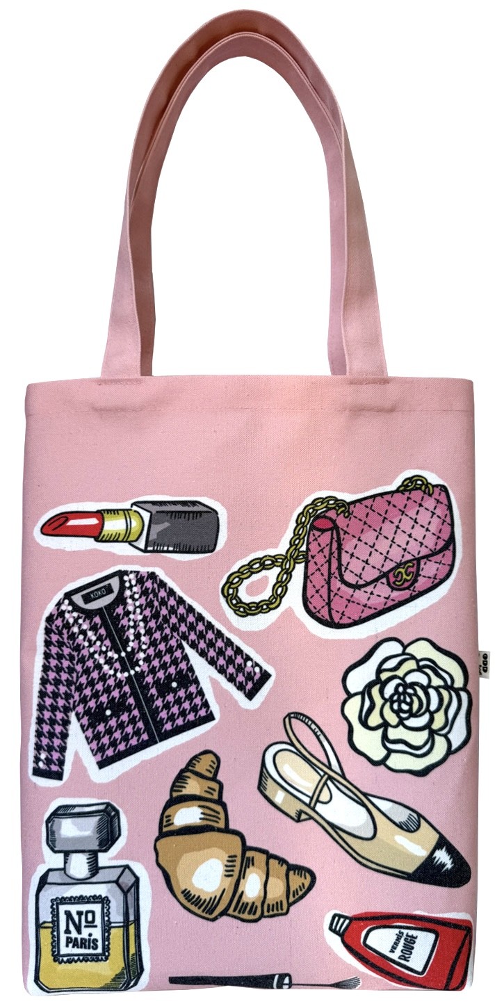 Pink Parisian textile tote bag