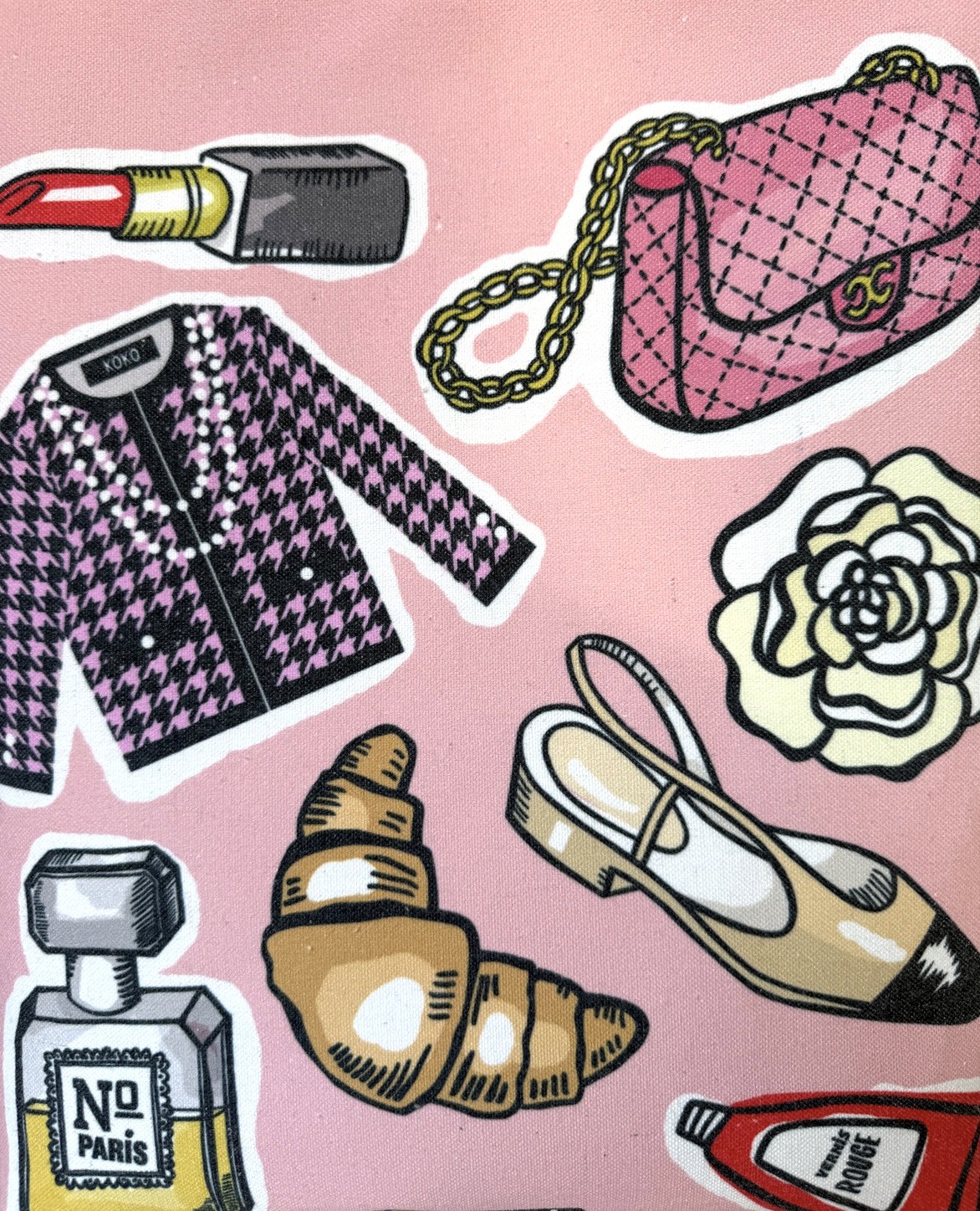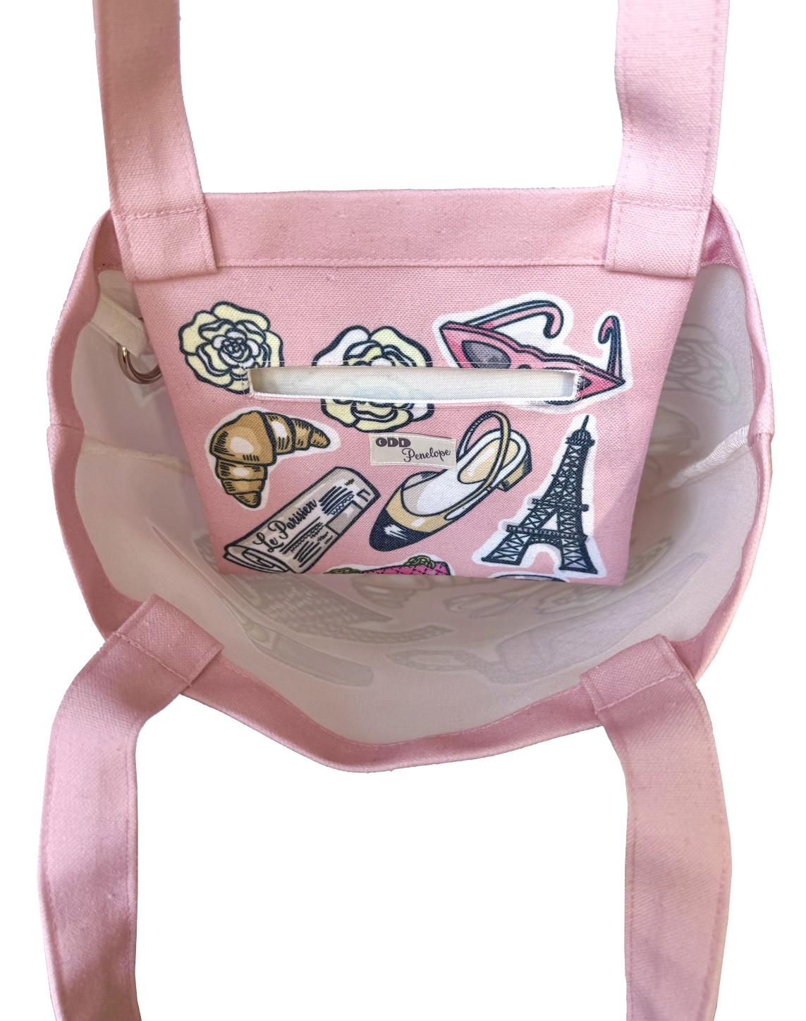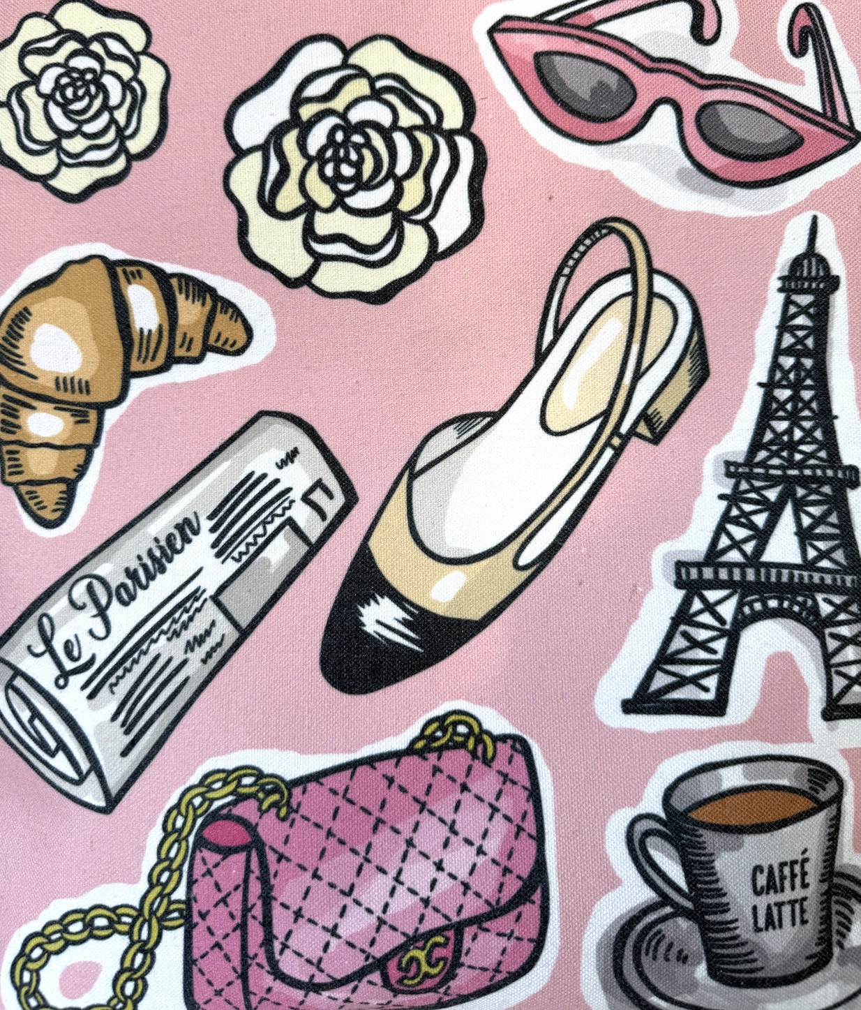 Pink Parisian textile tote bag