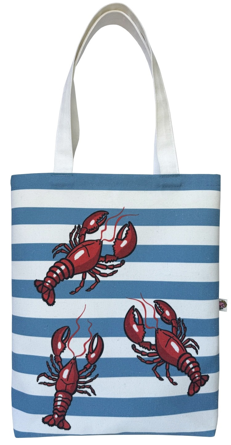Lobster white/blue textile tote bag